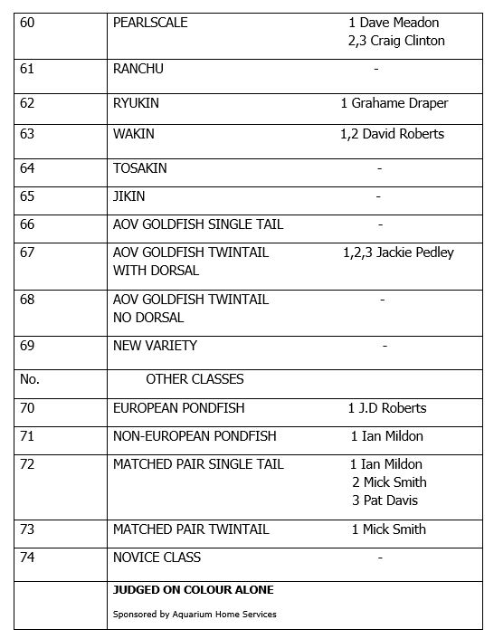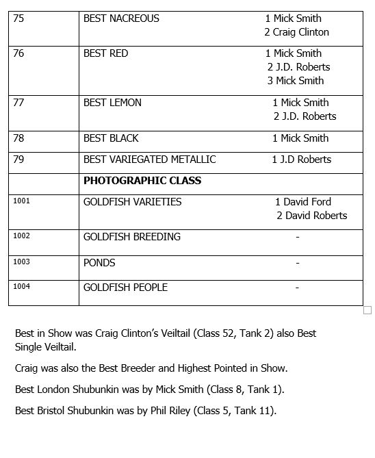 a grand Raffle with prizes worth up to £100 and an Auction of 20 Pedigree Goldfish that were all sold at bargain prices.